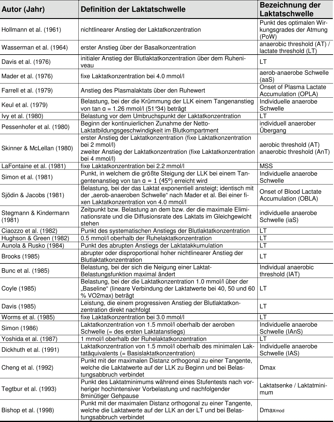 Dörr, C. (2010). Untersuchung der Validität verschiedener Laktatschwellenkonzepte an Ausdauersportlern.