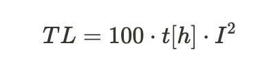 The training duration (t) in hours is multiplied by the square of the intensity factor (I):